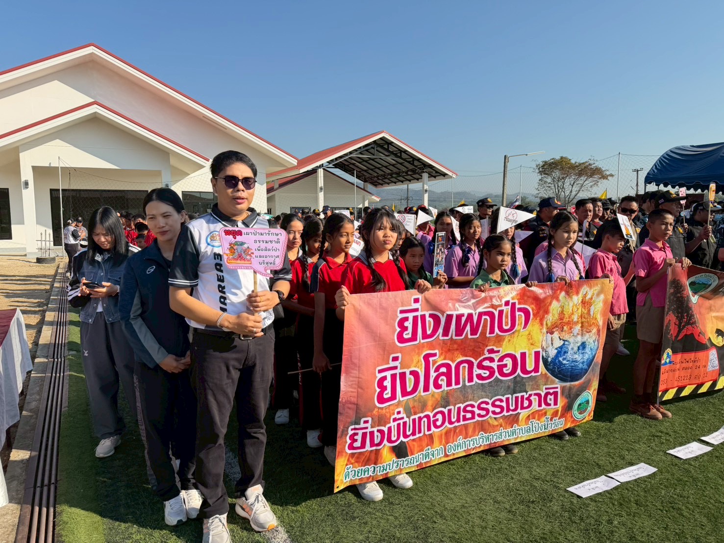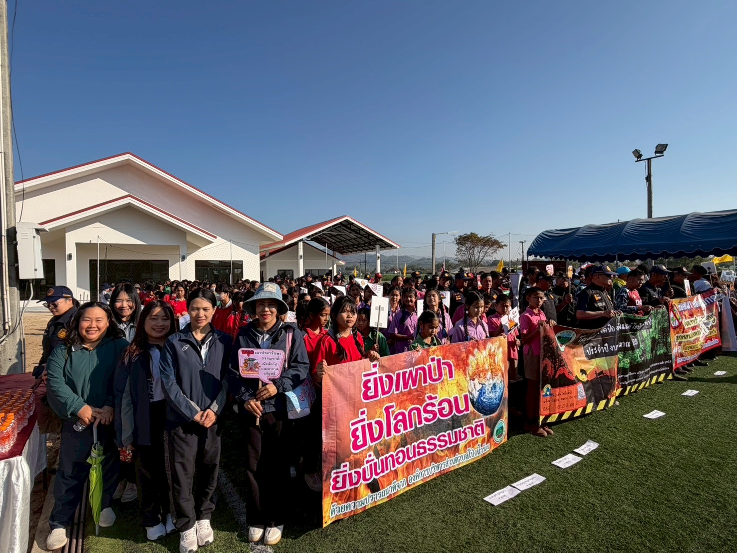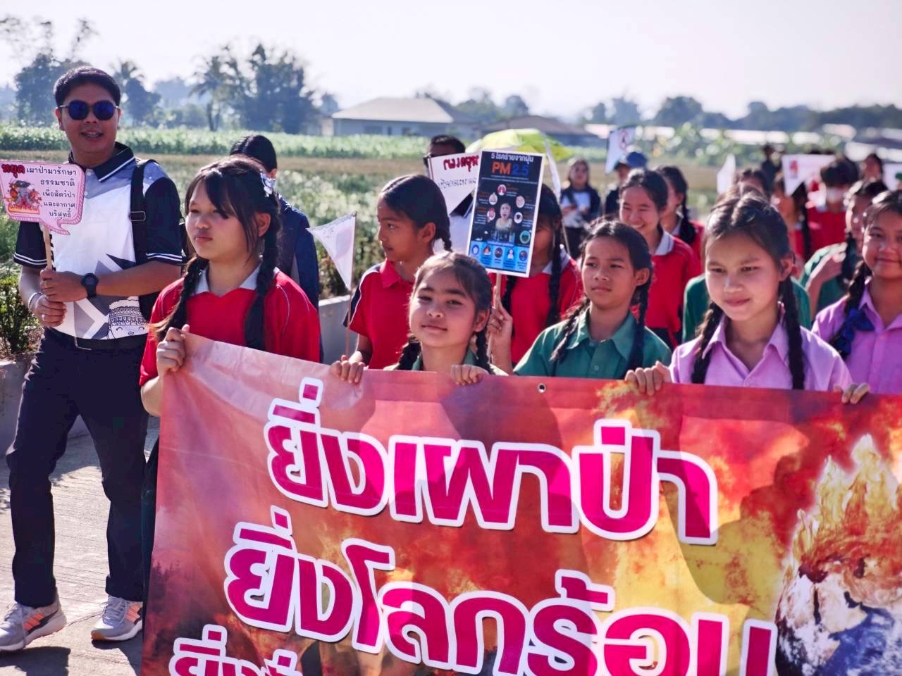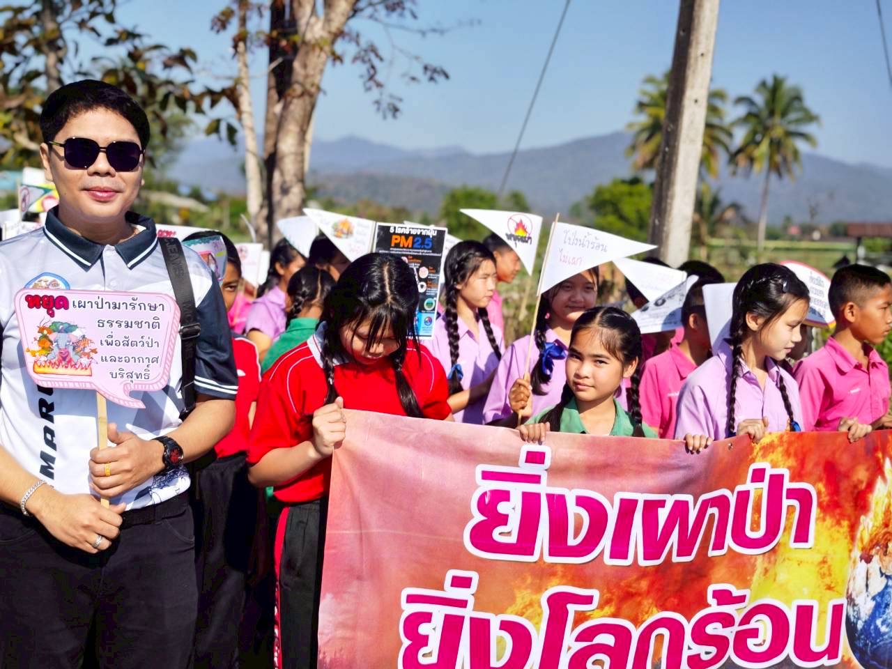 ภายในกิจกรรมมีคณะผู้บริหาร คณะครู และนักเรียน ร่วมกันถือป้ายประชาสัมพันธ์ เดินรณรงค์เชิญชวนให้ทุกภาคส่วนช่วยกันลดการเผาในที่โล่ง หยุดการเผาป่า และร่วมกันดูแลทรัพยากรธรรมชาติ 🌳