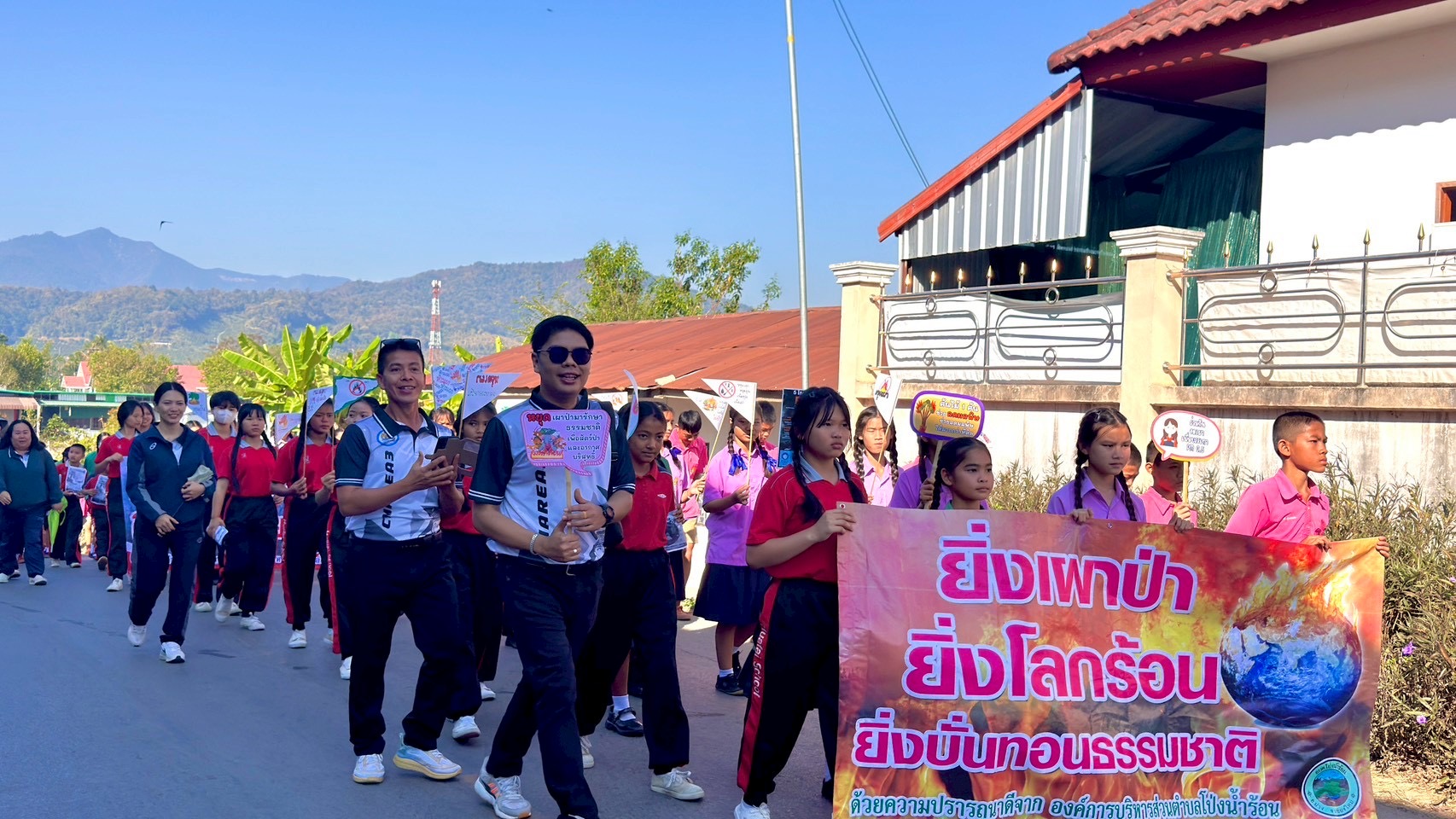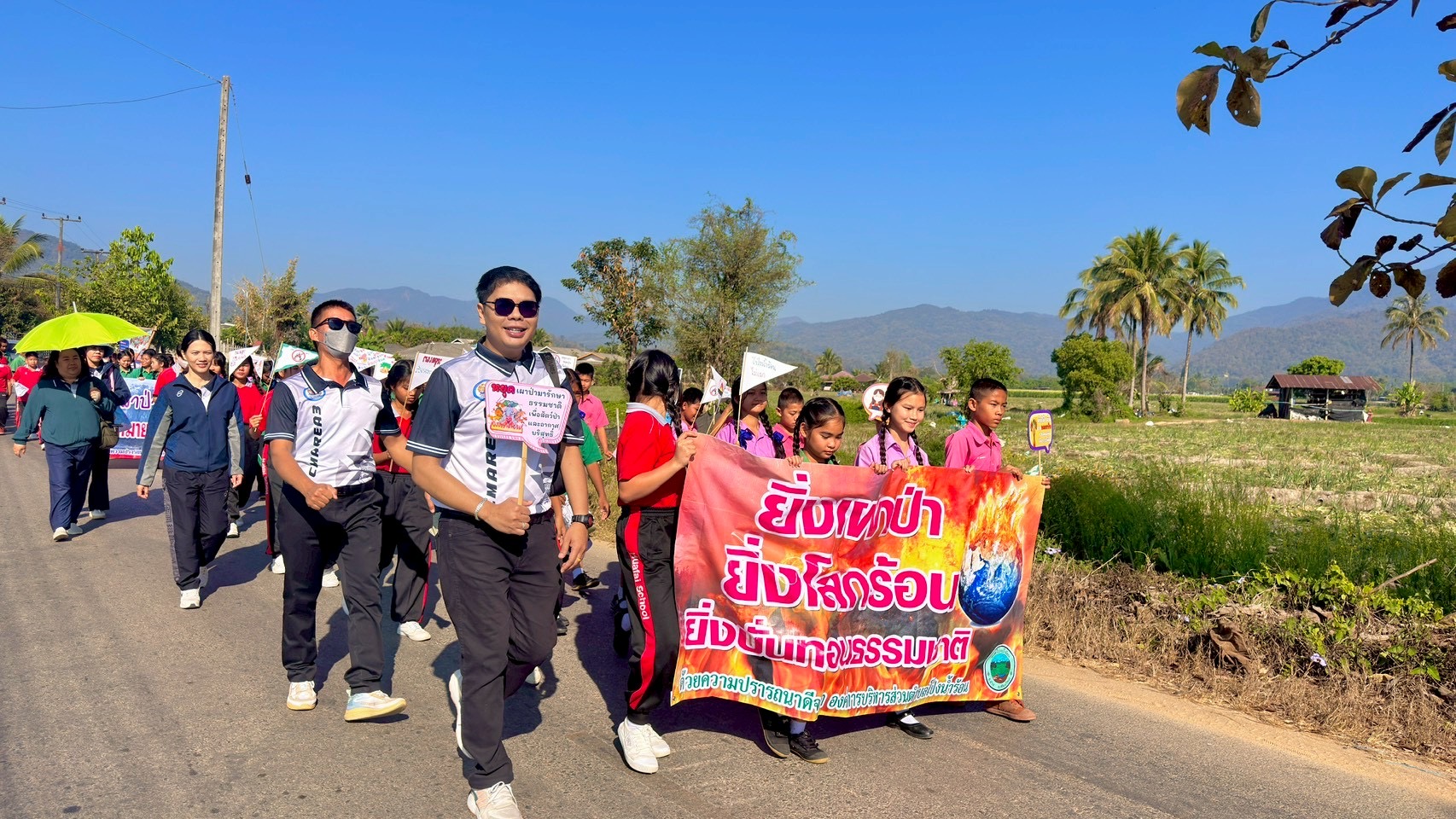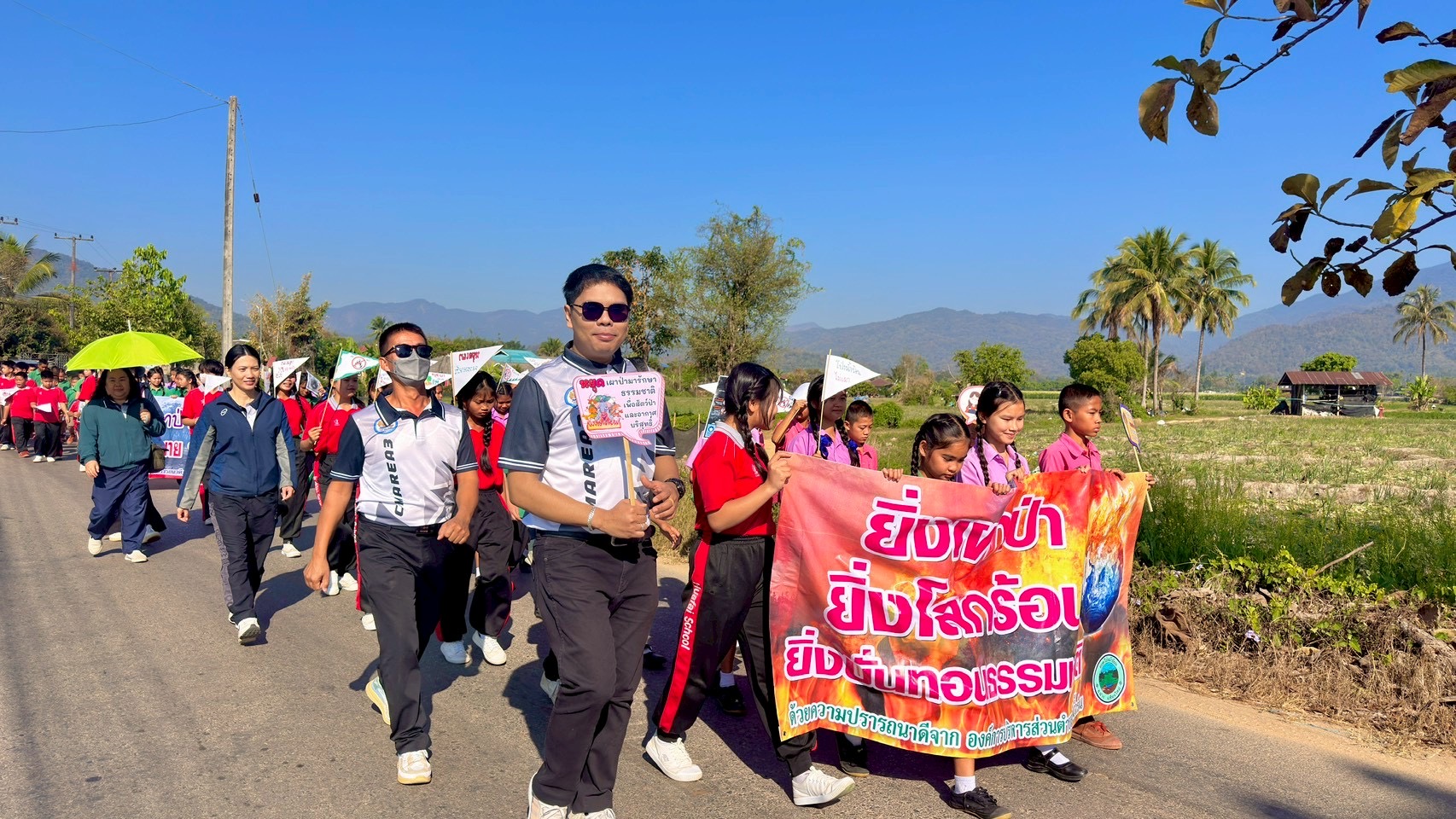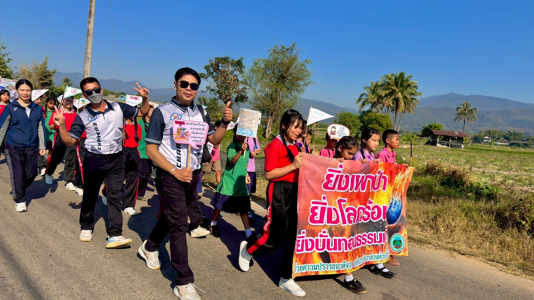 ภายในกิจกรรมมีคณะผู้บริหาร คณะครู และนักเรียน ร่วมกันถือป้ายประชาสัมพันธ์ เดินรณรงค์เชิญชวนให้ทุกภาคส่วนช่วยกันลดการเผาในที่โล่ง หยุดการเผาป่า และร่วมกันดูแลทรัพยากรธรรมชาติ 🌳