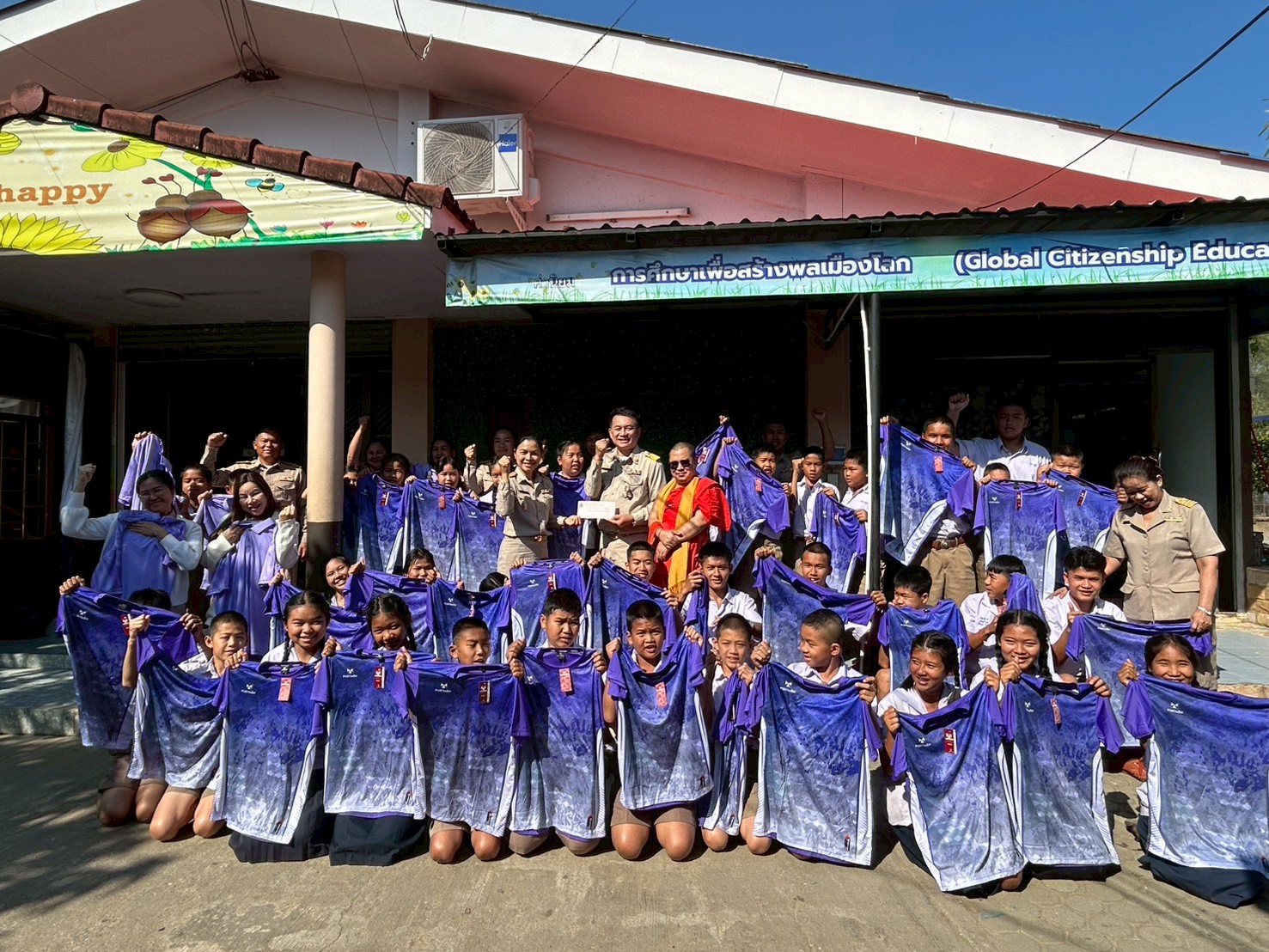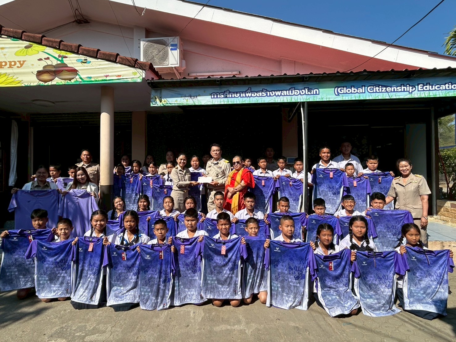ที่ได้เมตตามอบเสื้อกีฬาให้แก่ผู้บริหาร คณะครู และนักเรียน ศูนย์พัฒนาคุณภาพการศึกษาตำบลโป่งน้ำร้อน เพื่อใช้ในการจัดกิจกรรมกีฬาและส่งเสริมสุขภาพของนักเรียน