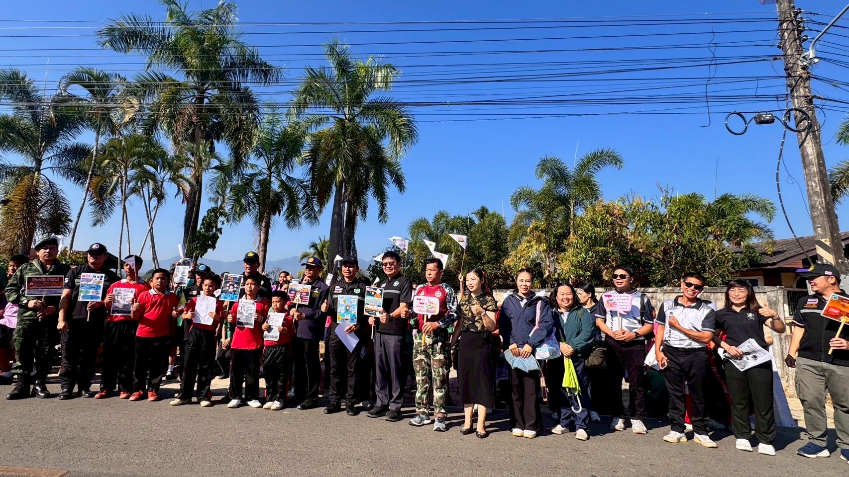 โรงเรียนบ้านต้นผึ้ง ร่วมกับ องค์การบริหารส่วนตำบลโป่งน้ำร้อน จัดกิจกรรมเดินรณรงค์ป้องกันและแก้ไขปัญหาหมอกควันและไฟป่า เพื่อสร้างความตระหนักรู้ให้กับนักเรียนและประชาชนในชุมชน