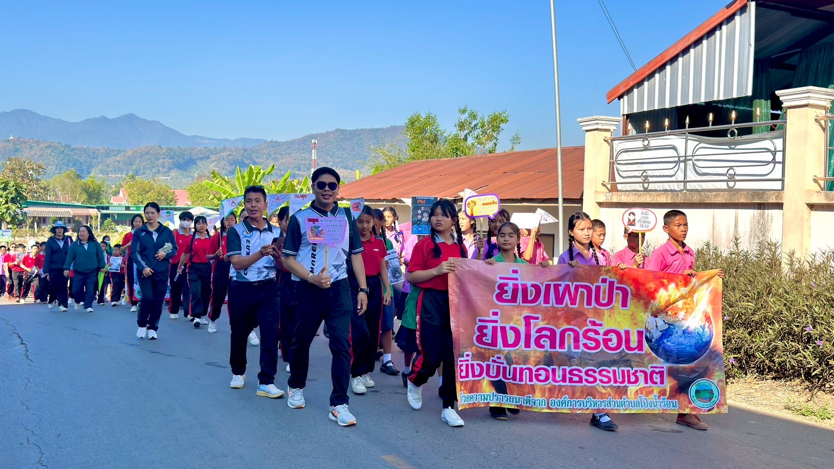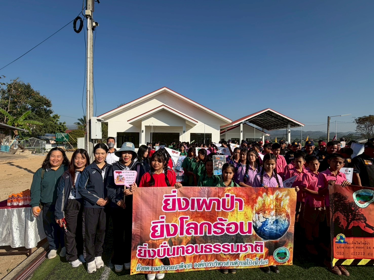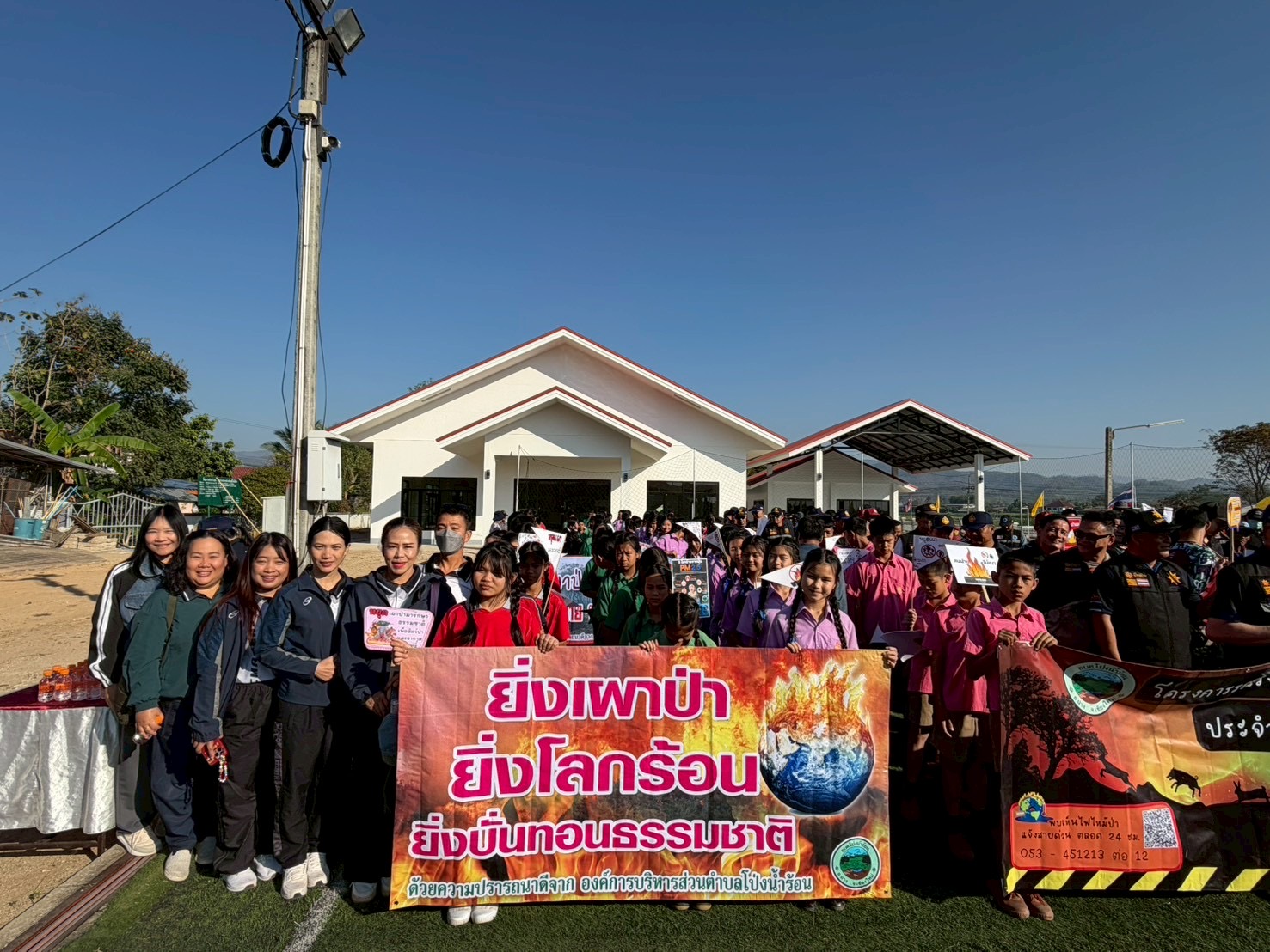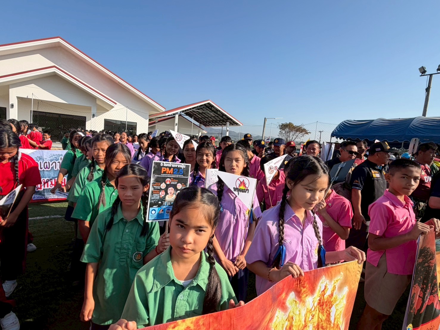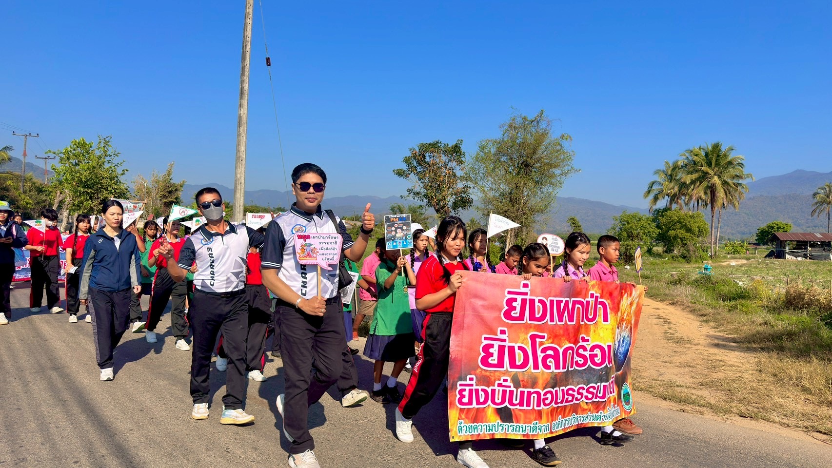 ภายในกิจกรรมมีคณะผู้บริหาร คณะครู และนักเรียน ร่วมกันถือป้ายประชาสัมพันธ์ เดินรณรงค์เชิญชวนให้ทุกภาคส่วนช่วยกันลดการเผาในที่โล่ง หยุดการเผาป่า และร่วมกันดูแลทรัพยากรธรรมชาติ 🌳